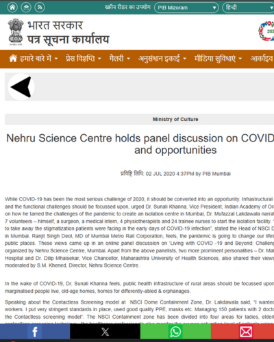 Nehru Science Centre Panel Discussion on COVID-19